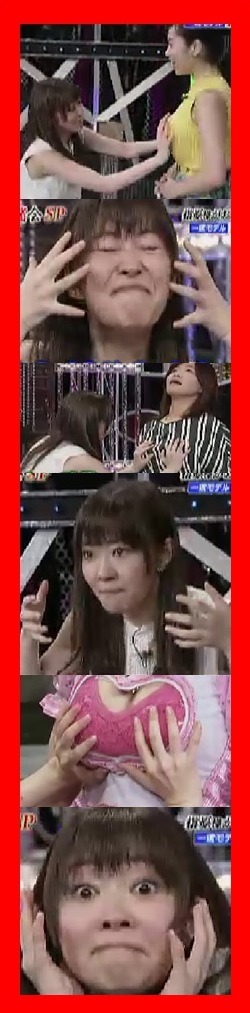 指原莉乃が胸を触りまくって、顔マネでおっぱいを表現!